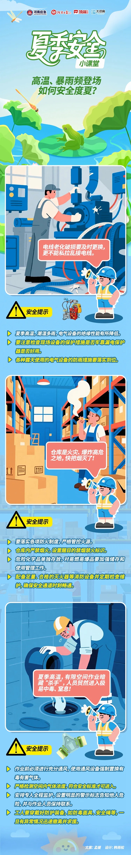 夏季天氣炎熱,同時暴雨、雷電等天氣逐漸增多,生產現場高溫、潮濕,容易導致各類事故發生。這樣的天氣條件下暗含哪些安全生產隱患?炎炎夏日,生產過程中需要重點防范些什么?一起來學習——