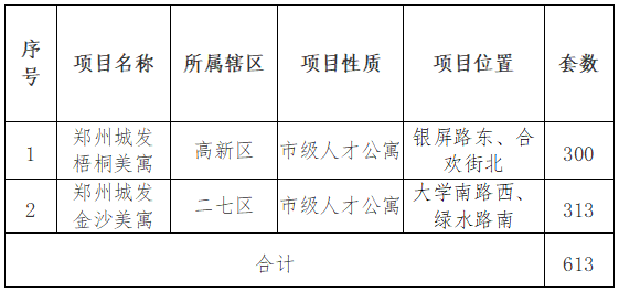 按照《鄭州市人才公寓管理暫行辦法》(鄭政辦〔2023〕11號)要求,現將2023年我市第六批人才公寓配租事項公告如下: