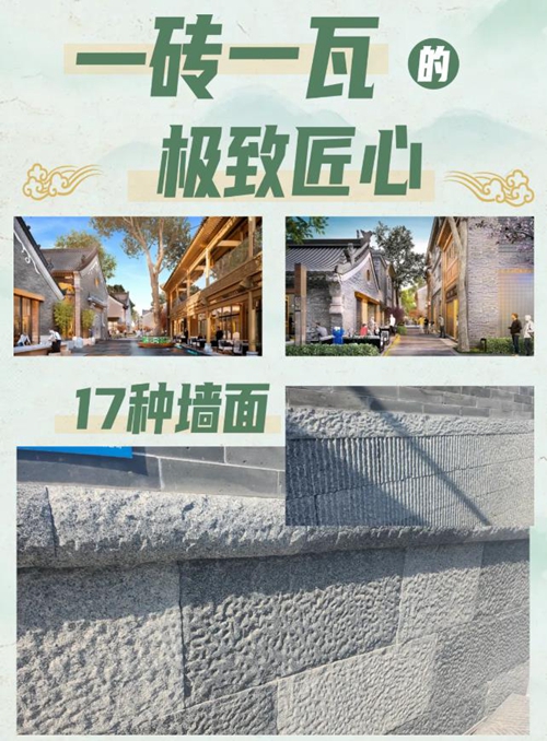 在15個院落采用了17種墻面,其中僅有5種墻面采用了新磚,這不僅體現(xiàn)了對審美的高標準,也反映了項目對材質(zhì)和施工工藝的嚴格要求。