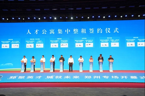 下午,第七屆中國(guó)·河南招才引智創(chuàng)新發(fā)展大會(huì)鄭州專場(chǎng)盛大開幕。在開幕式上,舉行了人才公寓集中整租簽約儀式。