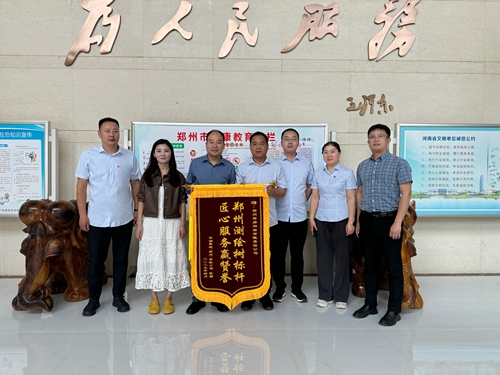 鄭房測(cè)繪公司第三分公司接到鄭州新發(fā)展?jié)欀梅康禺a(chǎn)開(kāi)發(fā)有限公司贈(zèng)送錦旗 高鵬/攝