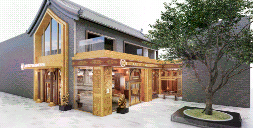 以COMMUNE幻師的門店設計為例——從效果圖可以看出,建筑外部以青灰色磚墻復刻商代建筑肌理,檐角神獸造型融入現代燈光設計,整體風格充滿著古樸與時尚。店內則以暖色調營造松弛感,酒墻擺滿了來自全球的精釀。每當味蕾觸碰到精釀的麥香,窗外同時飄入來自3600年前夯土的氣息——在這里,顧客喝的不是單純的酒,而是歷史與現代的奇妙敘事。