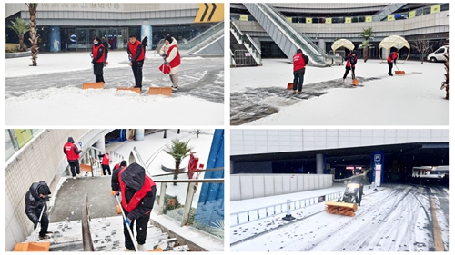 奧體中心迅速啟動雨雪應急預案,聚焦核心通道與經營區域,多輪布撒融雪劑、清除積雪、防護設施,不間斷開展防墜雪巡查。黨員突擊隊帶頭沖鋒,對南北門、東廣場等重點區域掃雪除冰,全力保障人員與車輛通行安全,確保運營平穩有序。
