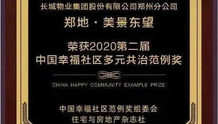 鄭地·美景東望項目榮獲“2020第二屆中國幸福社區多元共治范例獎”。