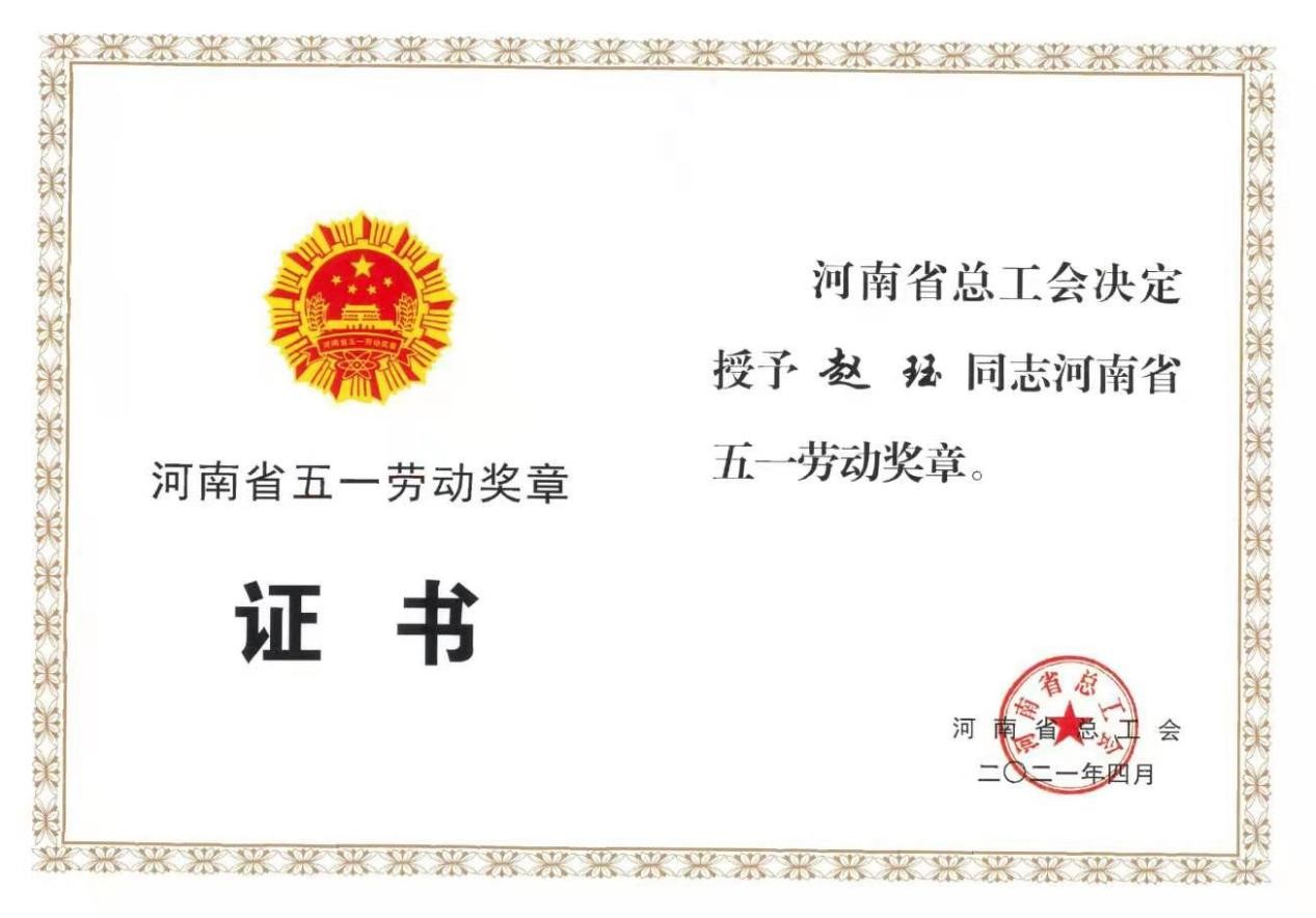 喜報(bào)!鄭州地產(chǎn)集團(tuán)投資管理有限公司趙玨榮獲“河南省五一勞動(dòng)獎(jiǎng) 章”殊榮!
